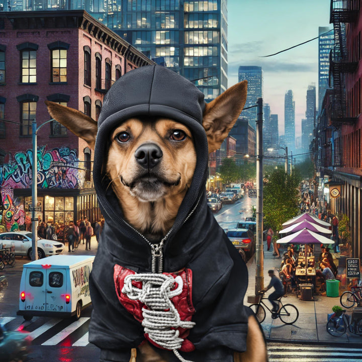 The urban backdrop, filled with street vendors, graffiti-covered buildings, and high-rises, sets the scene for this cool canine’s laid-back attitude. Whether you’re looking for a piece that adds personality to your space or just a touch of playful street style, this artwork is ideal for contemporary homes, offices, or studios. The perfect blend of humour and hip-hop culture, this print is sure to bring a smile to anyone’s face.