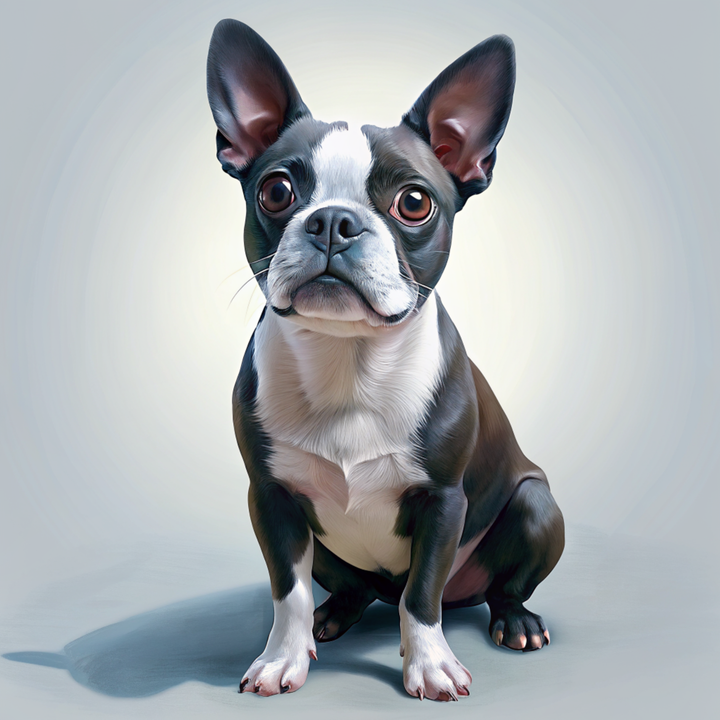 This charming watercolour-style illustration features a dignified Boston Terrier sitting proudly against a soft, pastel-hued floral background. The gentle blend of pinks, purples, and blues highlights the dog's expressive eyes and distinctive tuxedo-like coat. Perfect for dog lovers and art enthusiasts alike, this piece brings a sweet and stylish touch to any room. Ideal for nursery walls, pet-themed decor, or as a thoughtful gift for Boston Terrier owners.